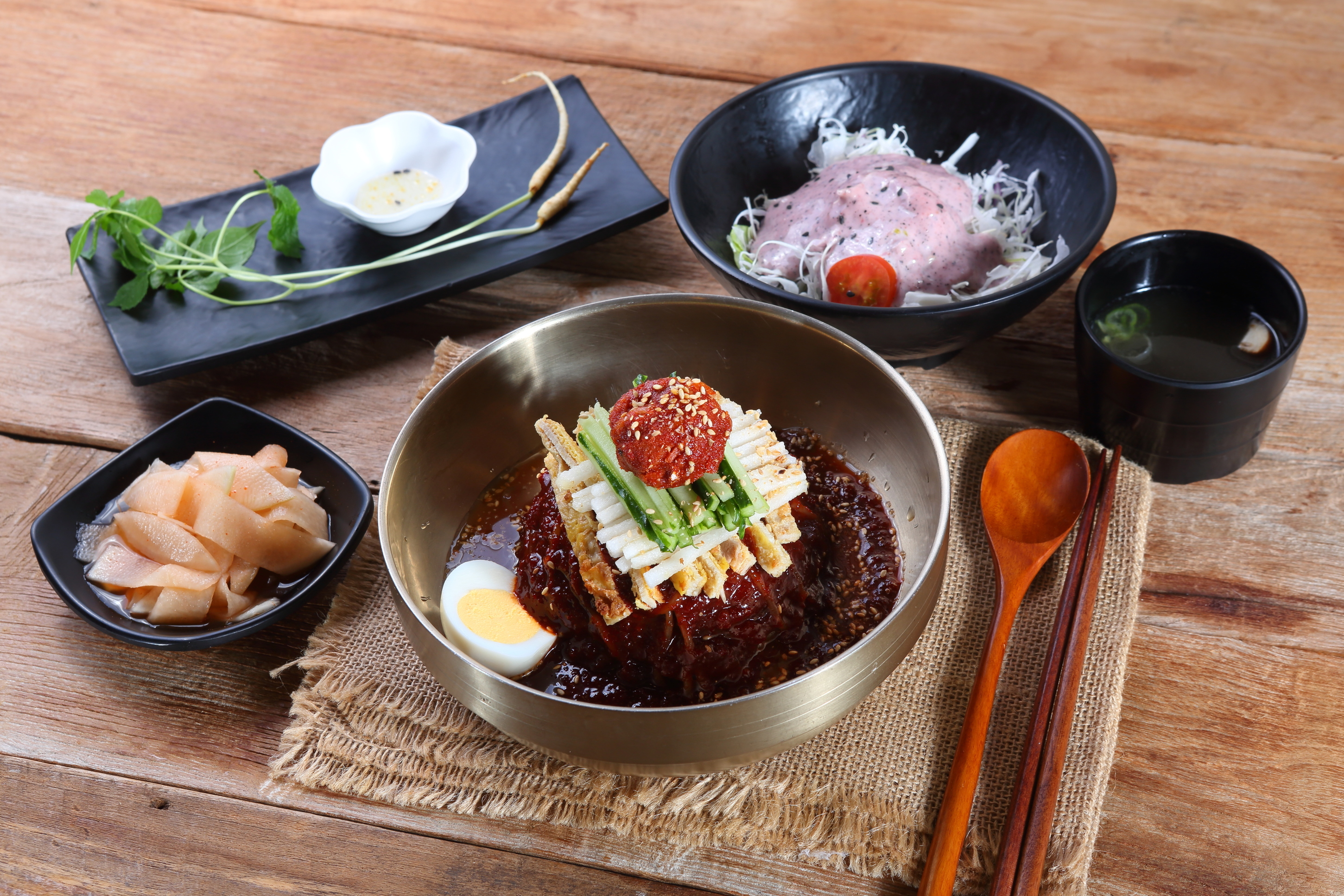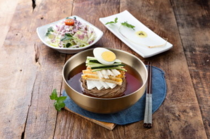 1906년 나는 새도 떨어뜨린다는 을사오적 우두머리 이지용이 천만금을 들고 와 자기 사람이 되어달라고 하자 "나라 팔아먹은 역적"이라 꾸짖는 진주 기생 산홍의 이야기를 듣고 이종상 세프가 만들어낸 세상에 단 하나뿐인 이름을 가진 냉면 산홍[ 山紅 ] - 그녀의 높은 자존심처럼 고명은 높게 올렸고, 채용신의 팔도 미인도에서 영남 미인으로 그려진 그녀였던 만큼 냉면 한 그릇에 가장 아름다운 모습과 정성스러운 맛을 담고자 노력하였습니다.