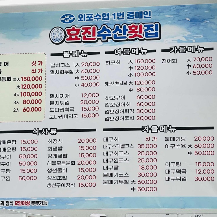 거제 횟집 외포 효진수산횟집 물메기코스 지금제철