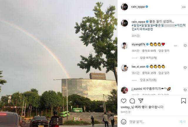 20일 비는 자신의 인스타그램에 "좋은 일이 생겼어"라는 글을 게재했는데요.
