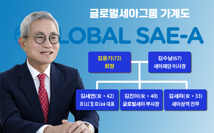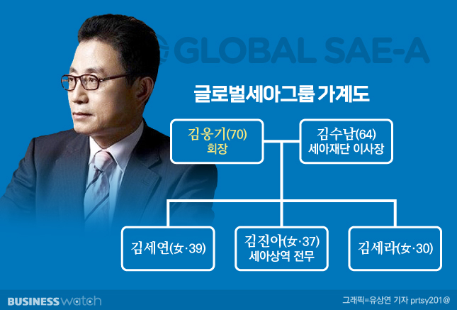 둘째 딸인 김진아씨는 글로벌세아 그룹총괄 부사장, 셋째 딸인 김세라씨는 세아상역 전무를 각각 맡고 있다.