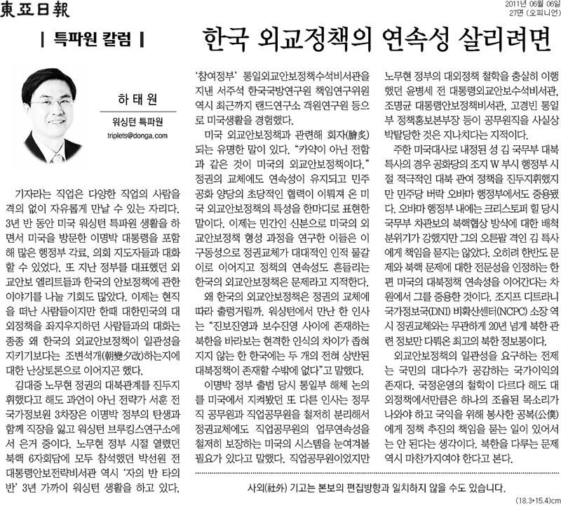 동아일보 워싱턴특파원