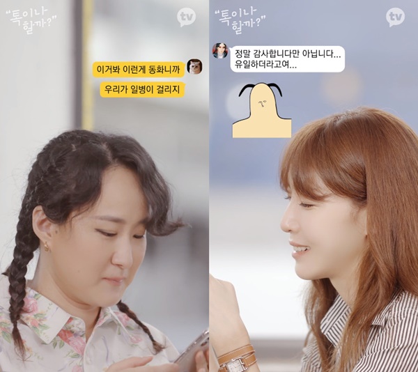 27일 공개된 카카오TV 오리지널 웹예능 '톡이나 할까?'에서 김이나 작사가는 선우정아와 일대일 톡 대화를 나눴습니다.