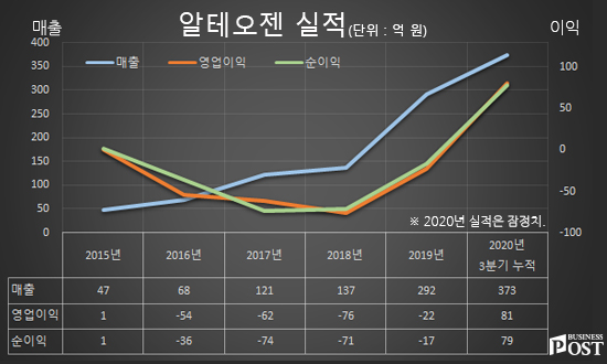 2020년 9월 3일 기준으로 알테오젠 주식 567만 주를 보유해 20.19%의 지분을 들고 있다. 2021년 2월 25일 시가 기준으로 7288억 원 규모다.