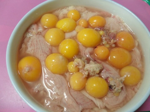 노랗고 동글동글한게 닭의 난소(달걀되기 전 상태)