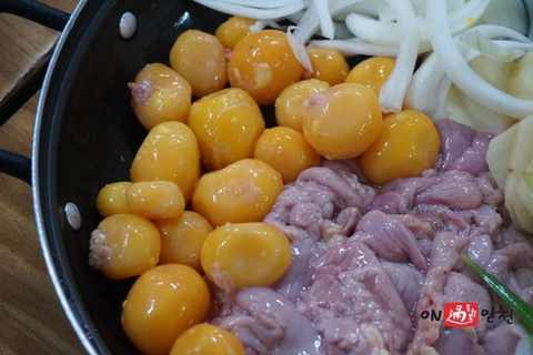 출처 : 여성시대 ㅂㅈㄷㄱㅅㅁㄴ더 이상 산란하지 못할정도로 나이든 닭고기에닭알집(난관), 닭알(난소), 똥집을 넣어 볶은것육질이 엄청 쫄깃하다고 함노랗고 동글동글한게 닭의 난소(달걀되