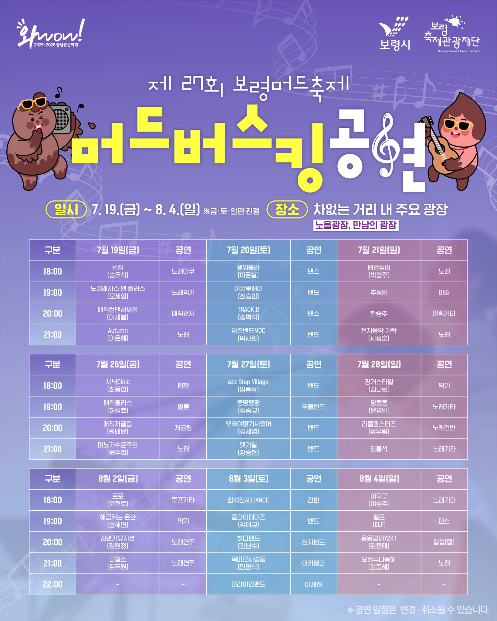 ●공식 보령머드축제 계정 안내시간: 09:00~18:00