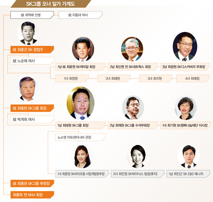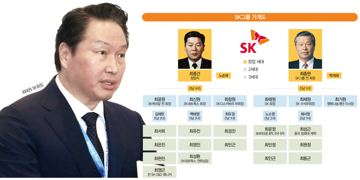 최종건 창업주가 1973년 마흔 여섯의 젊은 나이에 세상을 떠난 뒤 동생 최종현 전 회장이 경영권을 승계했다. 1998년 최종현 전 회장 사망 후엔 그의 아들인 최태원 회장이 SK그룹 경영권을 물려받았다.