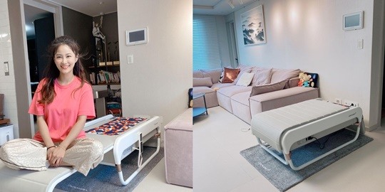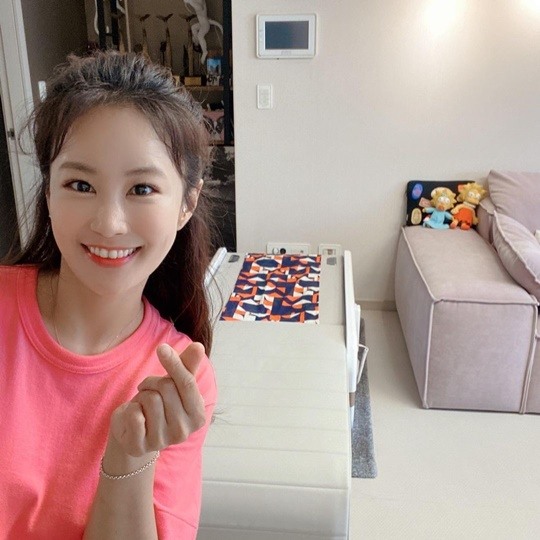 공개한 사진에는 집 거실에서 사진을 남기고 있는 김지민의 모습이 담겨있다. 김지민은 소파 옆에 새로 들인 가구에 앉아 행복한 미소를 지어 보이고 있습니다.