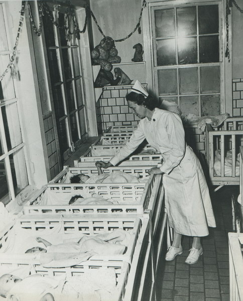 간호사인 Frank Keller부인이 아이들을 돌보고 있다.청주.