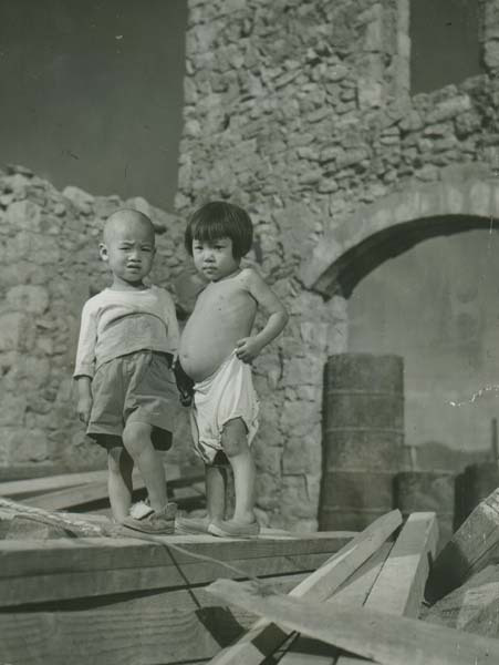 의정부 도봉고아원의 두 고아. 아이들의 부모는 북한 공산군에게 학살 당하였다.