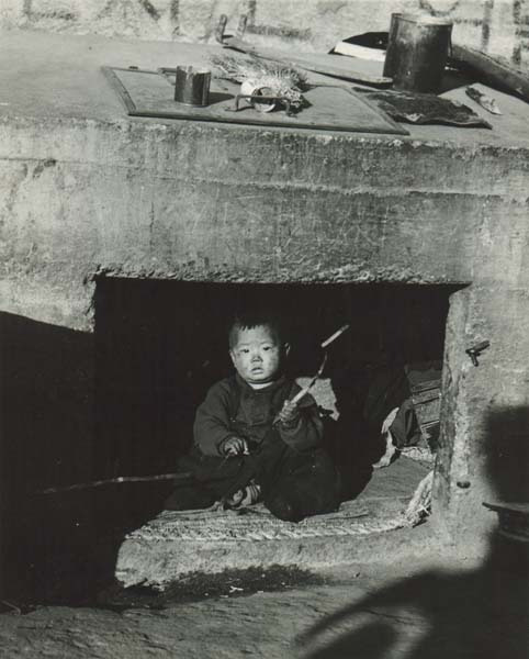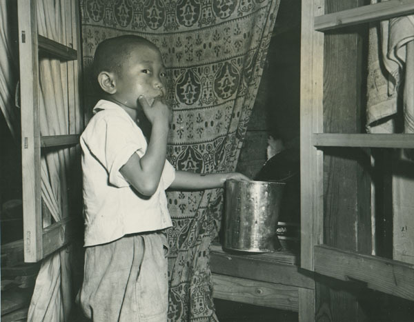 바가지를 쥔 채,이 어린 고아는 무엇을 생각하고 있을까?