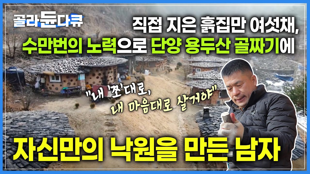 저 푸른 초원 위에 그림 같은 집을 지은 주인공을 찾아간 곳은 충북 단양군 단성면! 이곳에 단양팔경 용두산 자락을 따라 15년 동안 흙집을 지으며 살고 있다는 임대혁(62) 씨가 산다는데. 좀 더 잘 짓고 싶은 마음에 집을 하나, 둘 짓다 보니 어느 순간 여섯 채로 불어났다는 흙집은 벽 하나, 지붕 하나에도 대혁 씨의 손길이 가득하단다. 그렇게 여섯 채의 흙집을 짓고 나니 15년 세월이 바람처럼 흘렀다고. 혼자 살아도 전혀 외롭지 않다는 흙집 왕국. 그중에서 가장 핵심이 되는 것은 24개의 서까래라는데. 첫 집은 지붕이 무너지고,