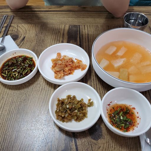 밑반찬으로 나온 동치미 한 입 떠먹고