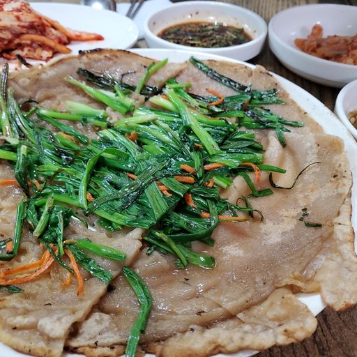 도토리의 진한 여운이 남는 곳이었어요. 도토리파전에 수제비2인분만 깔꼼하게 시켜봤습니다. 배가 좀 부른 상태에서 찾아가서 많이 못 먹을 것 같았는데요. 밑반찬으로 나온 동치미 한 입 떠먹