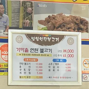 메뉴 연탄불고기 추가 연탄불고기 추가 15,000원 홍어추가 홍어추가 15,000원 가마솥 연탄불고기 가마솥 연탄불고기 14,000원 가마솥 연탄불고기 2인상 가마솥 연탄불고기 2인상 30,000원