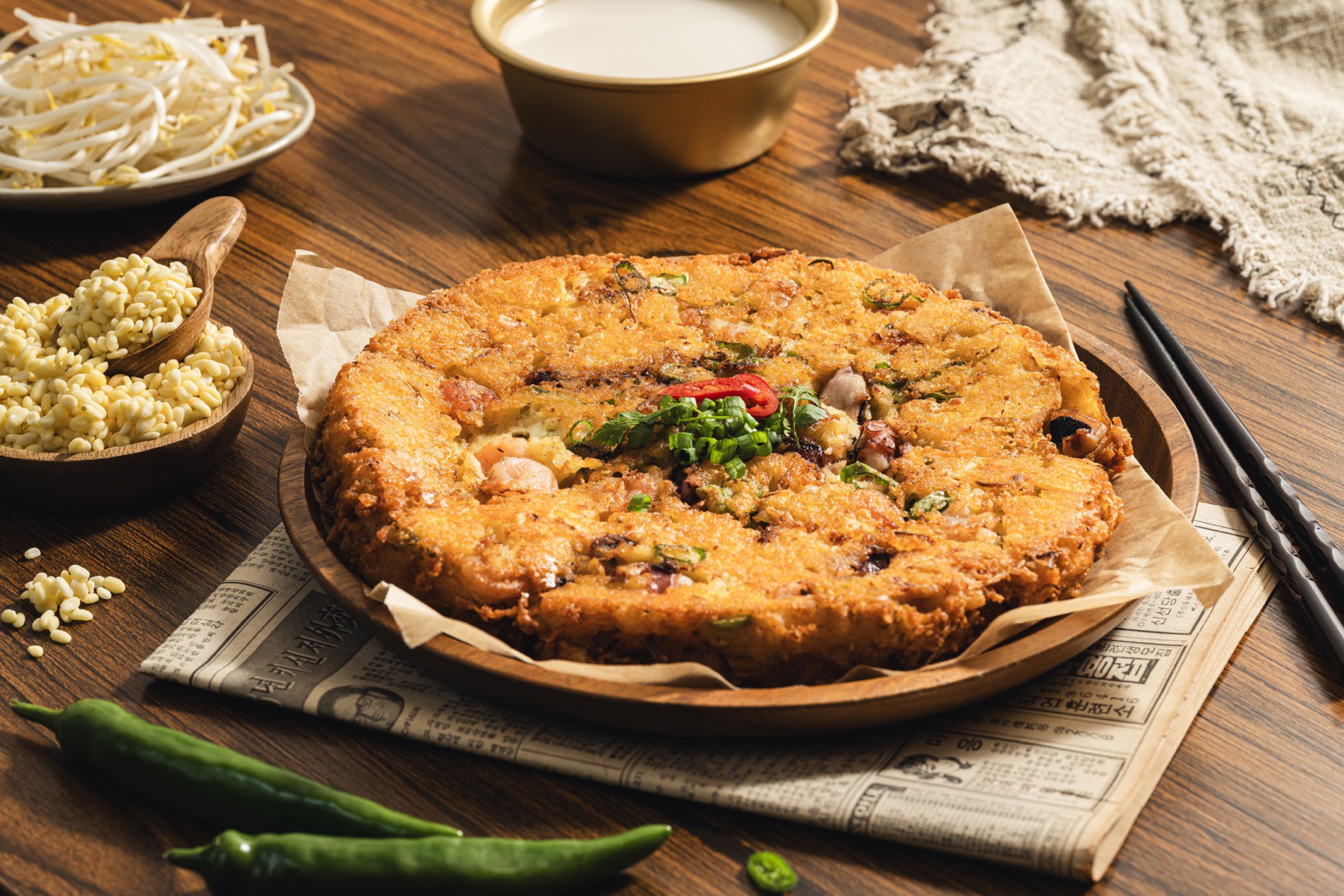 바삭한 빈대떡과 신선한 육회의 조화
