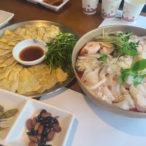 주문한 메뉴 물회 대 (4인), 파전, 육전 키워드 식사모임, 고급스러운, 푸짐한, 깔끔한, 무료주차, 발렛주차