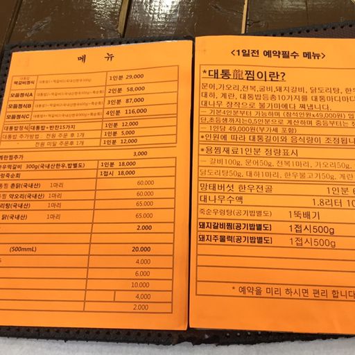 가격 대통밥정식 12,000떡갈비 18,000