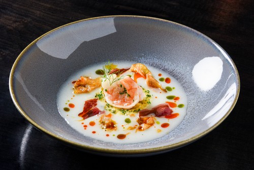 프랑스식 소스와 퓨레, 유러피언 풍 감성을 바탕으로 한식을 조화롭게 재해석한 코스 메뉴로, 고급 재료인 1++ BMS9 최상급 한우, 국내산 캐비어, 랍스터, 전복, 흑돼지, 메로 등을 사용했다.