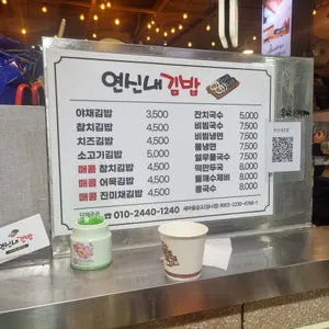 메뉴 야채 김밥 3,500원 참치김밥 4,500원 잔치국수 5,500원 비빔국수 8,000원