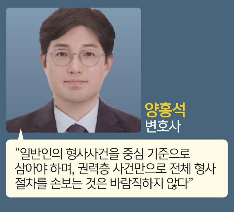 양홍석 변호사는 형사사법 문제에 높은 민감도를 가진 진보 성향의 변호사로, 특히 참여연대 활동과 검찰개혁 이슈에서 주도적인 역할