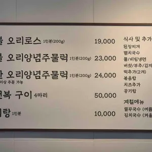메뉴: 돌판 오리양념주물럭 1인분(200g): 26,000원
