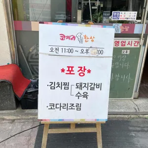 메뉴 수육김치찜 2인상 대표 41,000원 돼지갈비김치찜 2인상 대표 46,000원 코다리조림 2인상 41,000원 수육김치+뚝배기수제비 33,000원