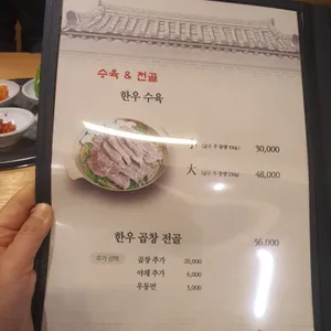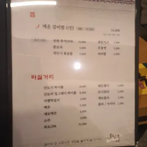 메뉴 한재 미나리 갈비탕 17,000원 명품 양갈탕 18,000원 매운갈비찜 (1인) 24,000원 한재 미나리 보리새우전 23,000원
