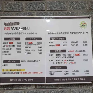 메뉴 청양 소고기 우거디탕 대표 12,000원 선지 소고기우거디탕 12,000원 구기자 고기정식 15,000원 얼큰 우거디탕 13,000원