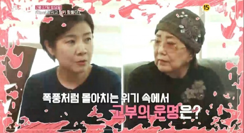 또한 남편과 아들에 대해 "남편은 코 으스러지고 눈 시신경을 다쳤다"며 "아들이 암진단을 받고 해외에서들어왔는데 보험을 없앤 상태였다"며 "주사 한대가 몇 백만원이었다"고 어려움을 토로했다.