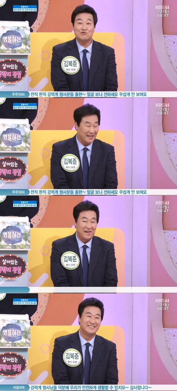 22일 오전 방송된 KBS1 교양프로그램 '아침마당'은 '명불허전'으로 꾸며져 강력계 형사들이 게스트로 등장했습니다.