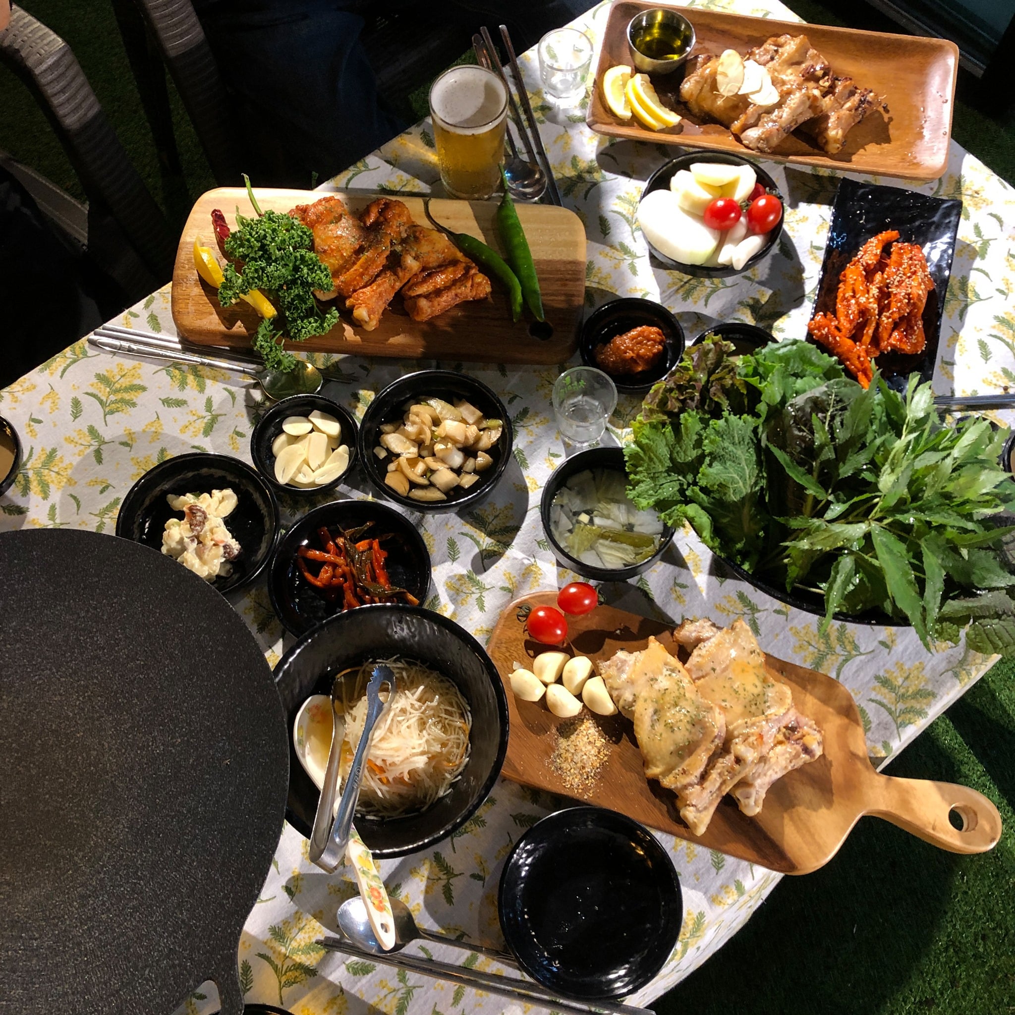 춘천 뷰 맛집🤦♀ 5가지❣숯불닭갈비🐓 비와☔도 테라스에서, 추석연휴영업🌈뷰깡패 초벌후~🧫 인덕션 깔끔하게,, 농장에서오는 쌈🪴 #오색찬란닭갈비 sns리뷰즉시20%할인🙌