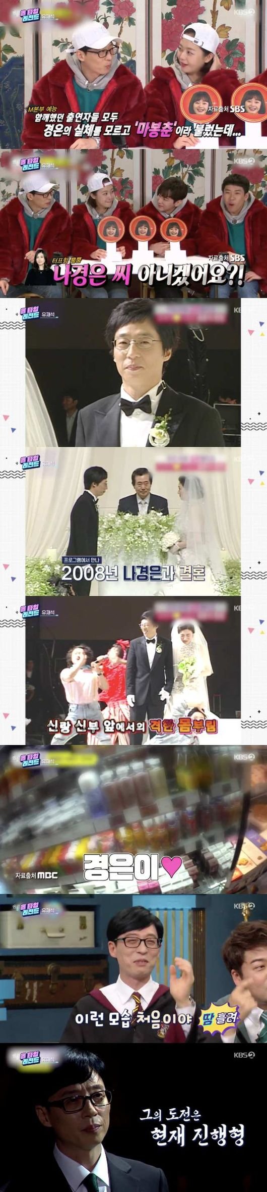 뿐만 아니라 MBC ‘무한도전’에서 만나 결혼한 아나운서 나경은에 대한 각별한 애정의 현장도 포착됐다. 유재석은 공식 석상에서 나경은에 대해 자주 언급하는 것은 아니지만, 촬영 중 종종 아내에 대해 말하며 각별한 마음을 드러냈다. 설렜던 순간으로 나경은을 꼽는가 하면, 나경은이 좋아하는 딸기우유를 사는 모습이 포착되기도 했습니다.