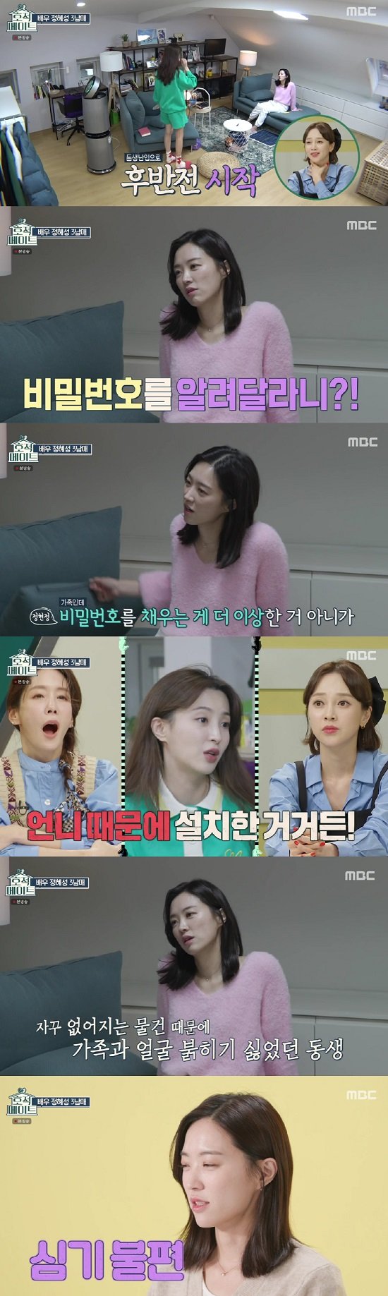 15일 방송된 MBC 예능프로그램 '호적메이트' 9회에서는 옷방을 둘러싼 정혜성과 언니의 살벌한 다툼이 그려졌습니다.