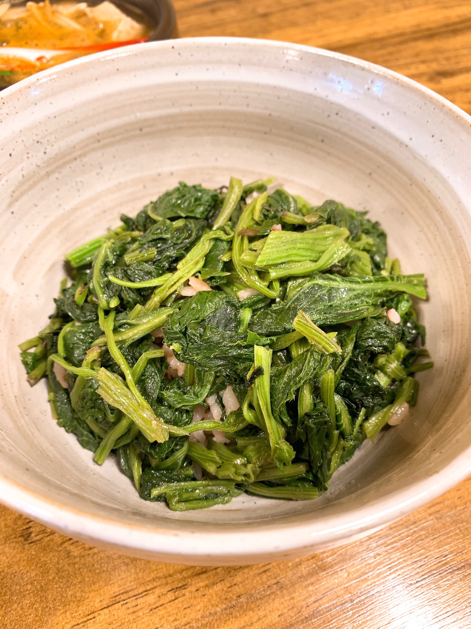 주문메뉴 : 생곤드레밥+된장찌개, 밭미나리전,
