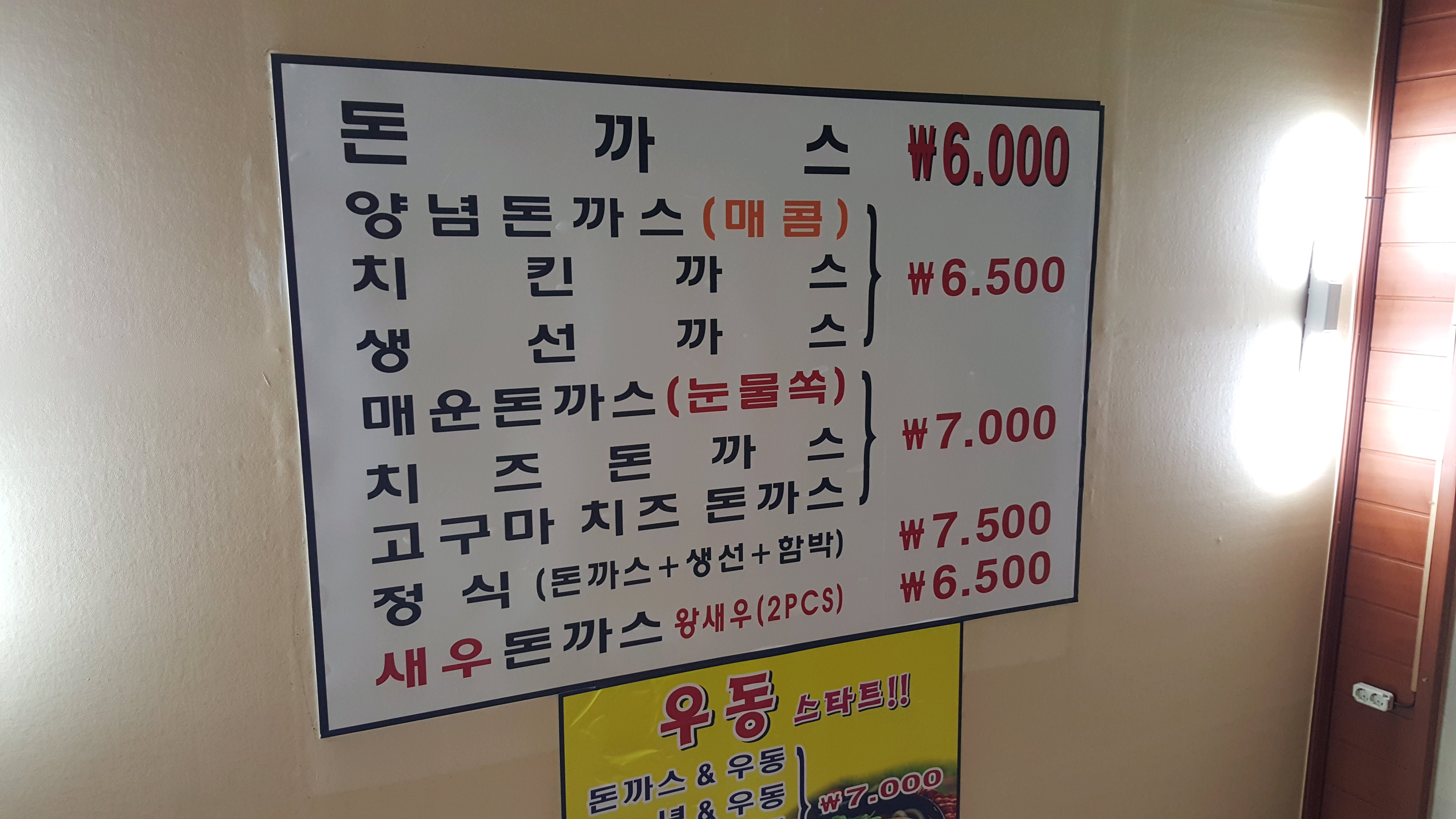 가격 돈까스 7,500생선까스 8,500
