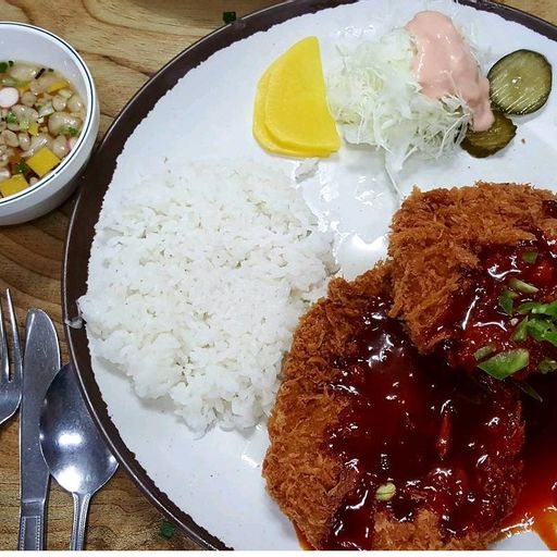 매운돈까스인 디진다 돈까스 먹으러 갔던곳이예요 색깔 무섭죠? 전 매운걸 좋아해서 기대 반 걱정 반으로 갔어요 먹자마자. 미칠정도로 맵진않고 먹다보면 얼굴이 뜨거워지고 우유랑 물을 계속