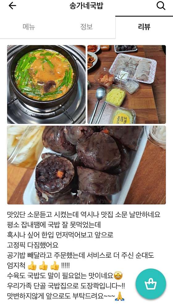 배달의 민족 <송가네 국밥>도 많은 이용 부탁드립니다