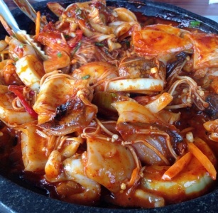 ■ 갑오징어 돌판구이 & 먹물 죽 & 양파김치 <해변촌탈아리궁>