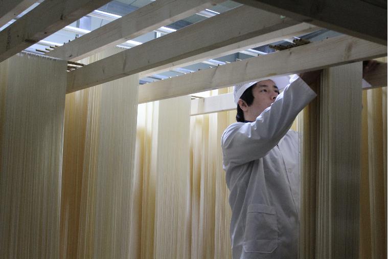 국수제조과정은 크게 6단계로 나뉜다. 반죽(배합)→압연(프레스)→절출(가닥 만들기)→건조(말리기)→절단(자르기)→포장. 이 중 반죽과 건조가 국수 맛을 내는 중요한 단계다.