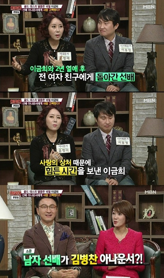 1999년 발간된 자서전을 통해 이금희는 선배 아나운서를 짝사랑했다고 밝힌 바 있다.
