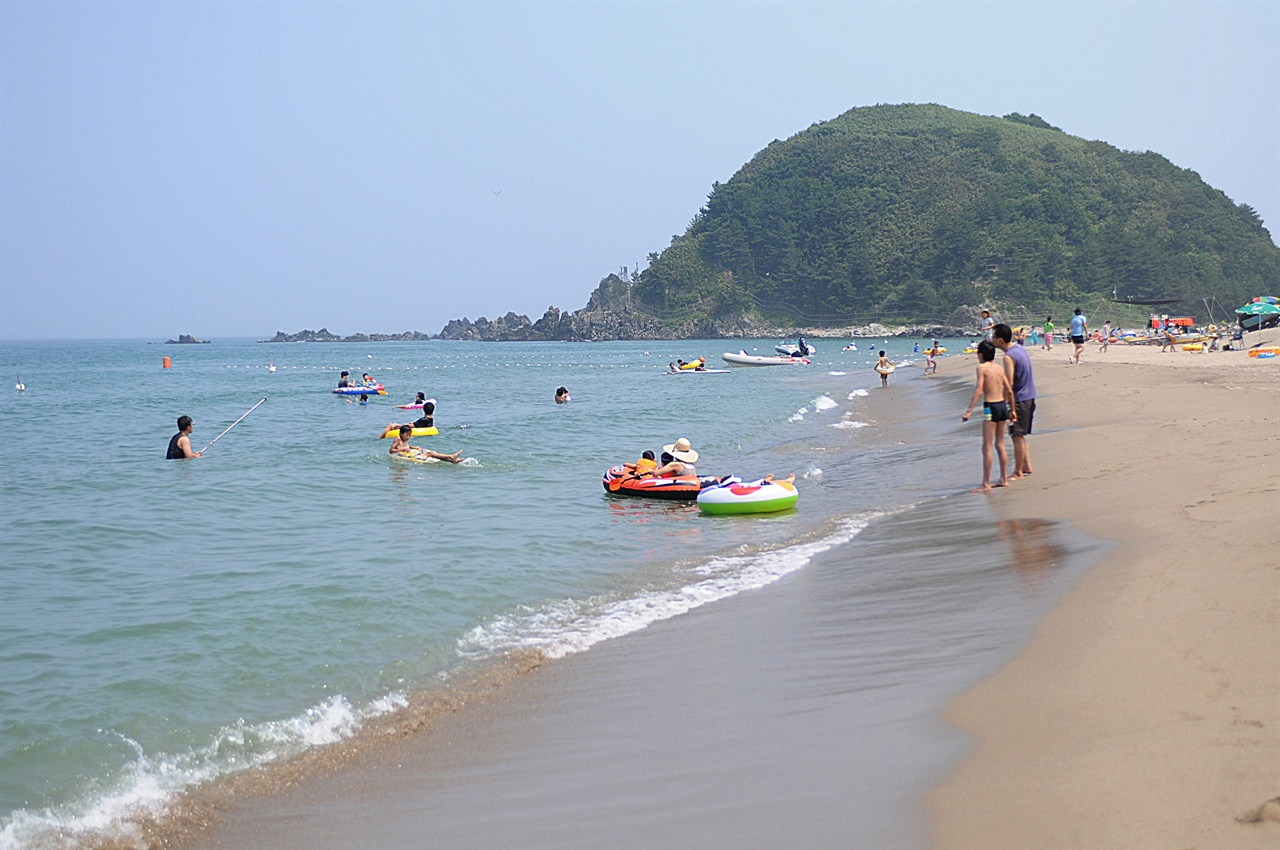 ▲ 멩방 해변 동해안치고는 경사가 가파르지 않고 수심이 적당하여 물놀이할 수 있는 구간이 제법 된다. 아이들을 데리고 가는 해수욕으로 괜찮다.