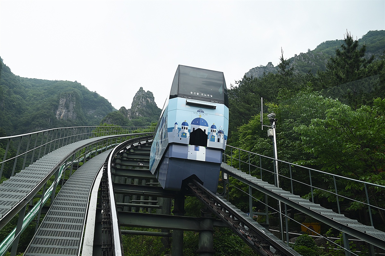 ▲ 환선굴 모노레일 가파른 경사를 타고 오르면 환선굴 입구 바로 앞에 선다. 과거에는 20분 이상을 걸어 올라갔다.