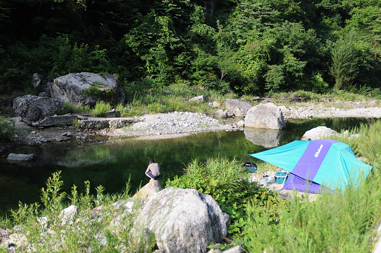 계곡에서 취사나 야영은 금지.