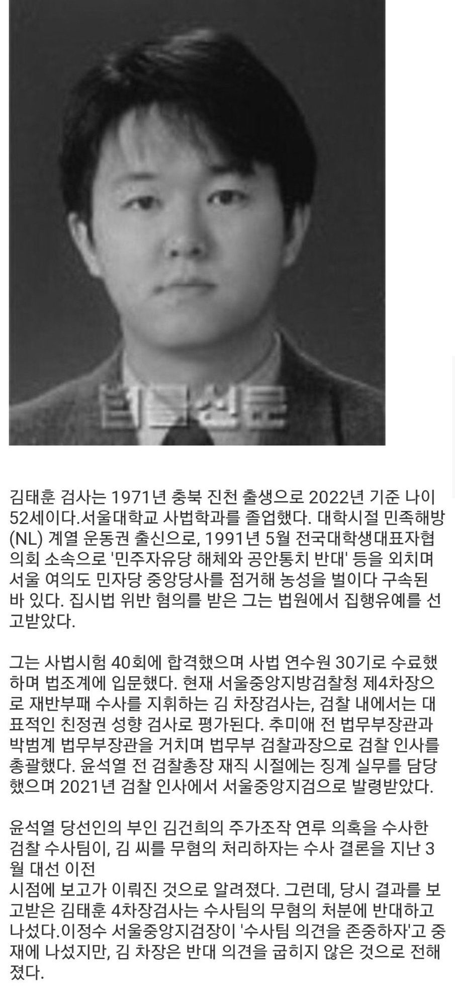김태훈 검사 프로필