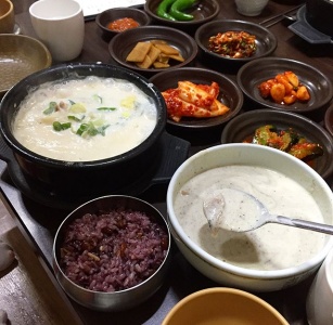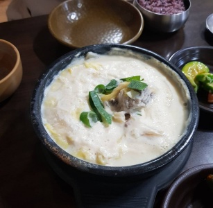 1956년 두부 공장을 하던 사장님이 콩 삶은 물을 굶주린 이웃 주민들에게 나눠주면서 콩국 집으로 전환하게 된 ‘경주 원조콩국’입니다. 새벽부터 문을 열어 이른 아침 식사를 하러 온 손님들을 맞이합니다. 대표 메뉴 ‘따뜻한 콩국’은 따끈한 콩물에 여러 토핑이 담겨 나옵니다. 토핑으로는 검은깨, 검은콩, 꿀, 찹쌀 도너츠 조합의 1번이 제일 인기가 많습니다. 이외에도 참기름, 들깨, 달걀 노른자, 흑설탕 등 구성의 토핑으로 이루어진 메뉴도 준비되어 있습니다. 따끈한 콩국에 검은깨와 검은콩으로 한층 구수한 맛을 살렸다. 가위로 잘게 잘라 콩국에 넣은 찹쌀 도넛은 쫀득쫀득한 식감을 더하며 씹는 재미를 살려줍니다. 콩국 외에도 콩국수, 생콩 해물파전, 순두부찌개 등 다양한 콩 요리를 맛볼 수 있습니다.