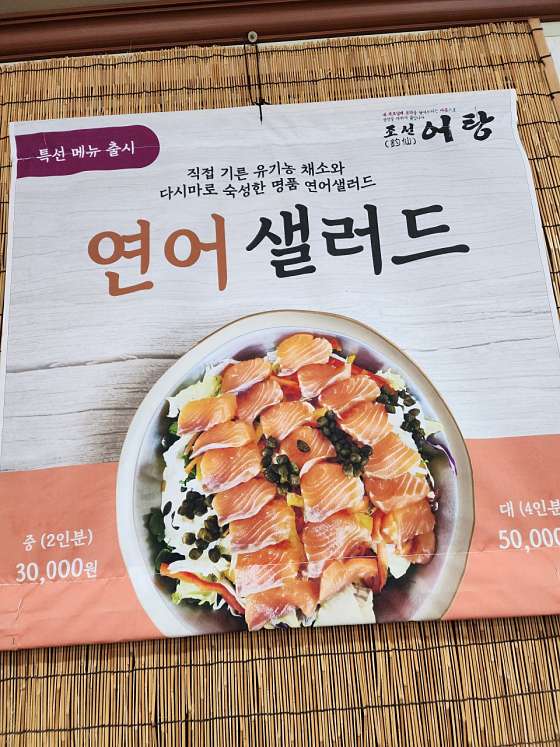 가격 연어샐러드 15,000어탕 10,000