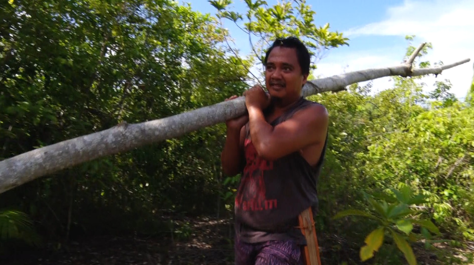 불 피워 밥할 땐 일을 거들고, 돼지 축사 만들 나무도 함께 베러 간다.