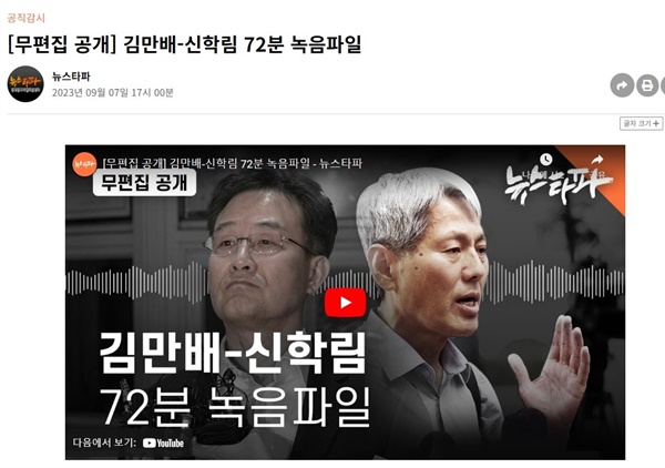 2022년 3월 6일, 제20대 대통령 선거를 불과 3일 남겨놓고 뉴스타파에 의해 공개됐던 김만배와 신학림 전 언론노조위원장이 2021년 9월 15일 당시 나눴던 인터뷰가 금품수수를 대가로 윤석열 후보를 낙선시킬 목적으로 허위 내용으로 이루어진 것 아니냐는 논란이다.