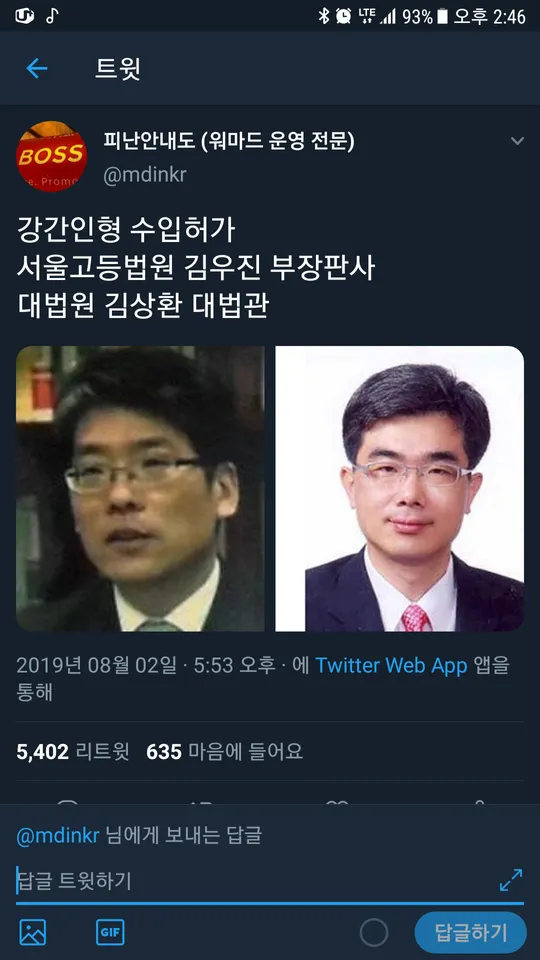 리얼돌 수입을 허용했다는 이유로 김우진 부장판사와 함께 트위터 워마드 유저에게 찍혀 한남(...)이라고 조리돌림 당하고 있다...